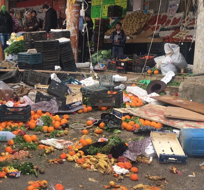 شغب في اربد اثر حملة امنية لإزالة البسطات ..صور