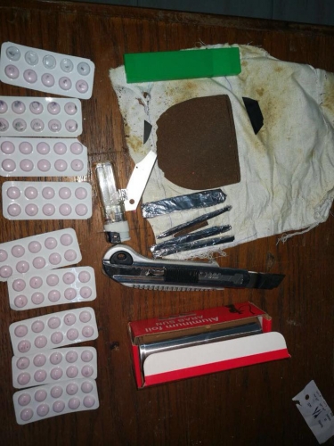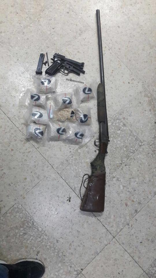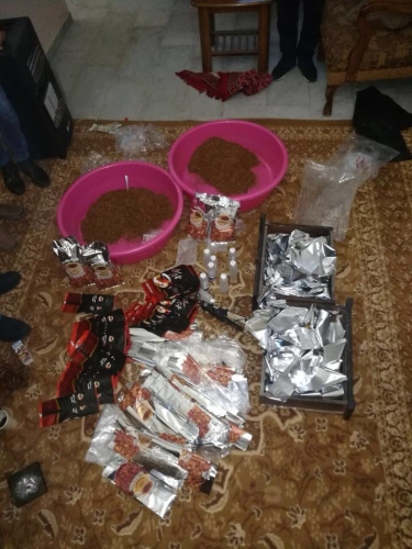 وفي محافظة الزرقاء دوهم منزل احد المروجين والقي القبض عليه وعثر داخل منزله على سلاحيين ناريين وكميات من الذخائر اضافة الى 1 كغم من مادة الحشيش الصناعي وقطع صغيرة مجهزة للبيع من مادة الحشيش المخدر