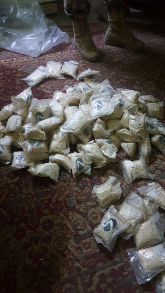 واضافت ادارة العلاقات العامة والاعلام ان ابرز تلك القضايا التي تعاملت معها كوادر مكافحة المخدرات كانت في احدى مناطق البادية الوسطى حيث قام فريق تحقيق ورصد ومراقبة بمتابعة ثلاثة اشخاص من مكرري مثل تلك القضايا من اجل التاكد من معلومات وردت اليهم حول امتلاكهم كميات كبيرة من المواد المخدرة والعمل على بيعها لمروجين اخرين حيث تمكن قريق التحقيق من التاكد من تلك المعلومات تحديد موعد قيامهم بنقل المواد المخدرة التي بحوزتهم ووضعت الكمائن اللازمة في المكان المتوقع التسليم به وجرى مداهمة اولئك الاشخاص فور وصولهم و القي القبض على الاشخاص الثلاثة وبتفتيشهم عثر بحوزتهم على 14 كف من مادة الحشيش المخدر اضافة الى 4000 حبة مخدرة وبالتوسع بالتحقيق معهم اعترف احدهم باخفاء كميات اخرى من تلك المواد حيث تم التحرك للمكان وضبط 128 الف حبة مخدرة .