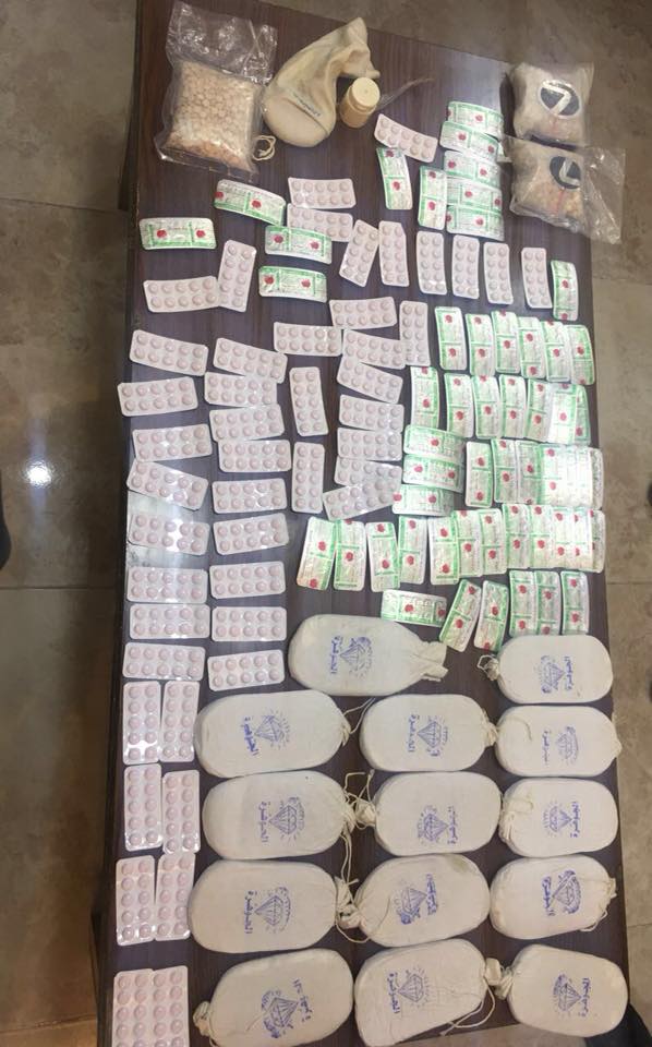 وتابعت ادارة العلاقات العامة ان معلومات وردت للادارة كذلك حول نية اشخاص قيام شخصين بنقل كميات كبيرة من المواد المخدرة من احدى المناطق الصحراوية بالقرب من الشريط الحدودي الشمالي حيث تم في الموعد المحدد مطاردة المركبة والاشخاص في تلك المنطقة الوعرة وقام المشتبه بهما عند ذلك بترك المركبة والفرار من لكان مستغلين وعورة المنطقة وطبيعتها وضبط داخل المركبة عند تفتيشها على 84 كف من مادة الحشيش المخدر و 3000 حبة مخدرة وجرى التعيم على الشخصين والبحث جار عنهما .