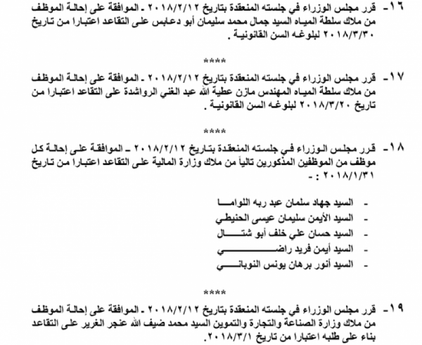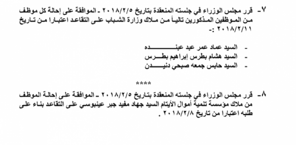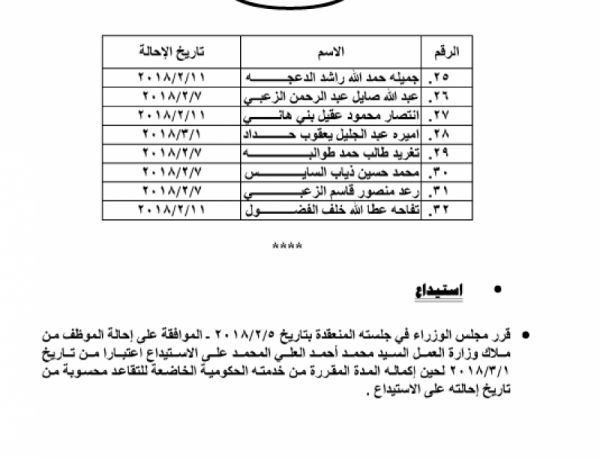 احالات على التقاعد من عدة جهات في الدولة....أسماء