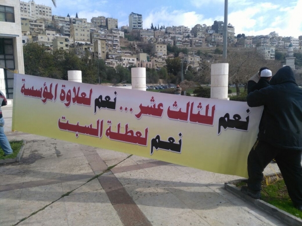 وطالب المعتصمون بدراسة رواتبهم التي لا تتناسب مع الوضع المعيشي، بالإضافة الى إلغاء صندوق الإسكان واقتطاع مبلغ 7 دنانير، والعمل على إلغاء الاشتراك وحرية الانتساب وإعادة ضمان الاموال المنتسبة لأصحابها ومحاسبة القائمين على قرار قانونية الاشتراك والانتساب.
