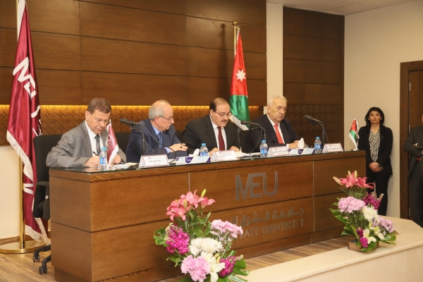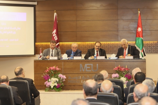 برعاية وزير التعليم العالي والبحث العلمي الأستاذ الدكتور عادل الطويسي، وبحضور رئيس هيئة اعتماد مؤسسات التعليم العالي وضمان جودتها الأستاذ الدكتور بشير الزعبي عقدت ندوة حوارية اليوم في جامعة الشرق الأوسط بعنوان "الطلبة الوافدون – نحو آفاق أرحب"حضرها رؤساء وممثلي الجامعات الأردنية الرسمية والخاصة ، وعدد من الملحقين والمستشارين الثقافيين العرب.