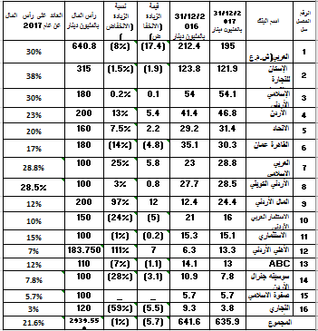 *البنوك التي تراجعت أرباحها عددها ثمانية وهي ، العربي, الاسكان, القاهرة عمان، الاستثمار العربي الأردني ، الاستثماري، ABC ، سوسيته جنرال ، التجاري الاردني.