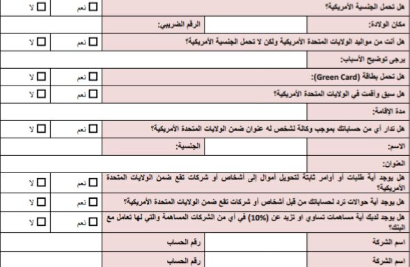 هل يوجد أية حوالات ترد لحساباتك من قبل أشخاص أو شركات تقع ضمن الولايات المتحدة الامريكية؟