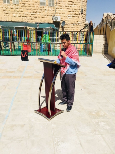 نشكر حضور رئيس مركز امن الهاشمي العقيد يحيى الطيب ونشكر الشرطه المجتمعية كل من الملازم عمر الخرابشه والوكيل احمد الحراحشه والمجلس المحلي في الهاشمي ونشكر قدس الاب جهاد عماري مدير مدارس مطرانية الروم الكاثوليك ونشكر قدس الاب عماد بواب الاب الروحي للمدرسة وجميع المعلمين والموظفين والطلاب على تعاونهم في انجاح هذا اليوم حيث اشتمل الاحتفال على كلمات شكر وتقدير وثناء على الجهود المبذوله وتم عرض فقرات وقصائد وطنية وتوزيع الشهادات على الطلاب .