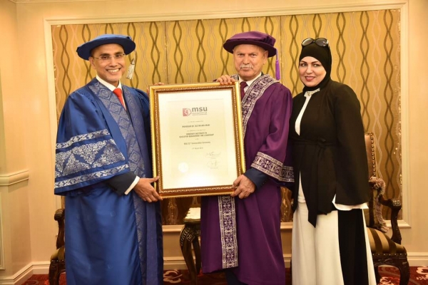 كرمت جامعه الادارة والعلوم الماليزية msu امين عام اتحاد الجامعات العربية الدكتور سلطان ابوعرابي العدوان بمنحه شهادة الدكتوراة الفخرية في قيادة وادارة التعليم.