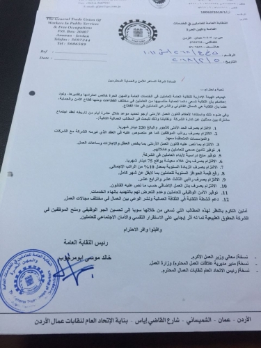 وبين أبو مرجوب لـ"أخبار البلد" أن النقابة قدمت هذه المطالب لوزارة العمل لتحويلها إلى نزاع عمالي عقب عدم التزام الشركات بهذه المطالب أو التعهد بحلها.