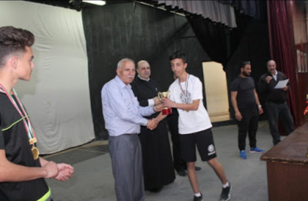 وفي نهاية الاحتفال قام راعي الحفل بتوزيع الكؤوس والمداليات على الطلبة الفائزين، وشكر في كلمته منظمي الماراثون الرياضي ثانوية الروم الكاثوليك في الحصن ممثلة بالسيد بولص معايعة مدير المدرسة، ومشرف الأنشطة الرياضية الأستاذ خلدون حداد ومعلمي الرياضة في مدارس المطرانية، كما تقدم بالشكر الجزيل للأب وليم سويدان كاهن الرعية والمشرف الروحي على المدرسة، كما شكر رجال الأمن العام في لواء بني عبيد على مشاركتهم في تسهيل الماراثون ورجال الدفاع المدني الذين تواجدوا للقيام بواجبهم الإنساني، وقدم الشكر الموصول للمركز الثقافي في مدينة الحصن ممثل بحضرة مديره السيد غيث حداد الذي شرع لنا أبوابه ﻹنجاز هذه الفعالية الرياضية، وتمنى التقدم والازدهار لمدارسنا في ظل صاحب الجلالة الملك عبدالله الثاني بن الحسين المعظم.