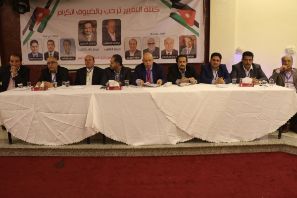 كتلة التغيير قامت بعمل اجتماعات في العديد من المحافظات في المملكة، وذلك ضمن برنامجها الانتخابي الذي يهدف الى تحقيق ما هو أفضل للمقاول الأردني في جميع أنحاء المملكة.