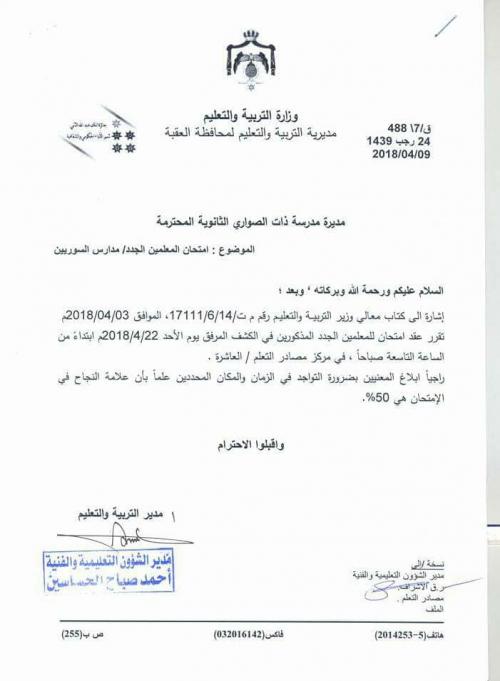 أخبار البلد - أخبار البلد - دعت وزارة التربية والتعليم عددا من المعلمين الجدد الذين حققوا المتطلبات المطلوبة للتعيين، حضور الامتحان المقرر عقده في مراكز الامتحانات التابعة لكل مديرية تربية على حدة.
