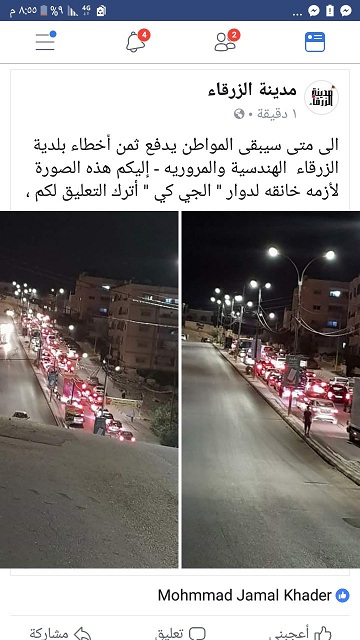 المواطنون كشفوا عن معاناتهم القائمة على مدار الساعة ازاء الازدحامات التي تشهدها منطقة الزرقاء الجديدة وتحديدا على دوار الـ "جي كي" والتي تُجبرهم في كثير من الاحيان الى استخدام طرقٍ فرعية لتفادي الازمات من مواطنين ومركبات، متسائلين بذات الصدد عن دور البلدية في تهيئة الدوار لصالح المحال والمطاعم والمولات المتواجدة في محيط الدوار على حساب المواطنين من المارة والمتسوقين !
