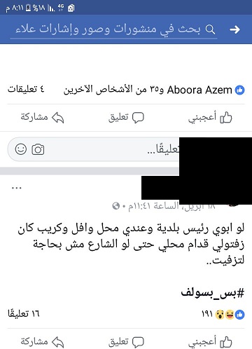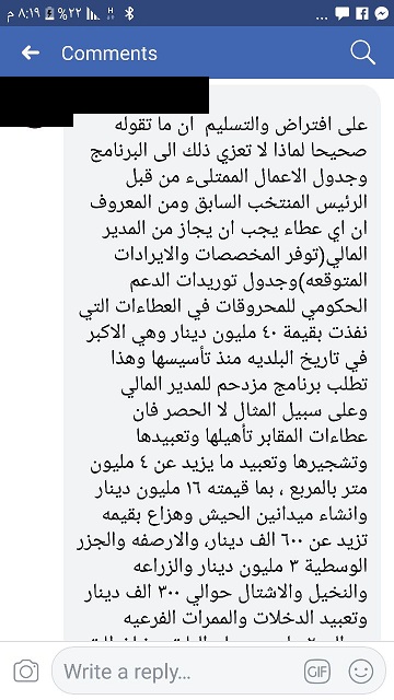 "غضبة" المواطنين التي حملتها صفحات التواصل الاجتماعي، والتي تعاطفت مع الرئيس ابو السكر الذي يعايش وضعا صحيا يمنعه من مباشرة مهامه كرئيس، طالبت بضرورة التحرك لحل الأزمات والقضايا العالقة التي يعاني من المواطنون، من تردي وانعدام مستوى النظافة، بالإضافة الى حالة "الفلتان" التي تشهدها الأسواق التجارية من اعتداءات على الأرصفة من قبل اصحاب محال وبسطات، هذا الى جانب الاختناقات المرورية التي حمّلوا مسؤوليتها لأصحاب مطاعم ومحال تجارية بمنطقة الوسط التجاري وفي منطقة الزرقاء الجديدة.