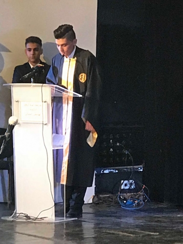ووجه طلبة الثانوية العامة كلمتي شكر للمدرسة باللغتين العربية والانجليزية والقى الكلمة باللغة العربية الطالب أحمد حنون وباللغة الانجليزية الطالب قصي عاشور.