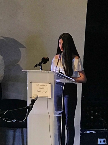 وقامت المديرة ماجدة مقاطيش بتسليم الدروع والشهادات للطلبة.