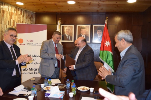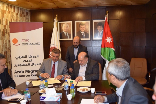 وتأتي المذكرة ترجمة لجهود التعاون المشترك والتنسيق بين الاتحاد العام لنقابات عمال الاردن والاتحاد العربي للنقابات في ما يتعلق بملف العمالة المهاجرة وتنظيمها وتدريبها في سوق العمل الاردني .