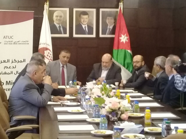 وقع الاتحاد العام لنقابات عمال الاردن اليوم مذكرة تفاهم مع مؤسسة التدريب المهني بخصوص تدريب العمالة المهاجرة وذلك في مقر الاتحاد العام بحضور ممثلين من الاتحاد العربي للنقابات .
