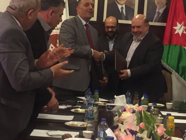 ووقع المذكرة رئيس الاتحاد العام السيد مازن المعايطة ممثلا عنه و المدير العام بالوكالة السيد عمر قطيشات ممثلا عن مؤسسة التدريب المهني و حضرها السيد محمد المعايطة من الاتحاد العربي للنقابات .