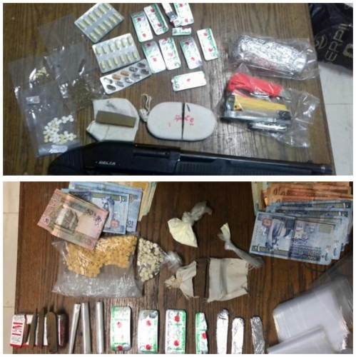 وتابع المصدر ان مرتبات الادارة نفذت كذلك حملات خاصة في منطقة جنوب عمان والبادية الشمالية لضبط عدد من الاشخاص المشبوهين في قضايا ترويح وحيازة المواد المخدرة حيث القي القبض في المداهمة التي نفذت في جنوب العاصمة على 10 اشخاص بعد مداهمة تفتيش منازلهم وعثر بحوزتهم على كميات من الحبوب المخدرة واضافة الى ثلاثة اسلحة نارية (مسدسات) كما والقي القبض خلال المداهمة التي نفذت في البادية الشمالية بالتعاون مع قوات الدرك على اربعة اشخاص من المشتبه بهم في قضايا المخدرات وضبط بحوزتهم على كمية من الحبوب المخدرة اضافة الى اربعة اسلحة نارية .
