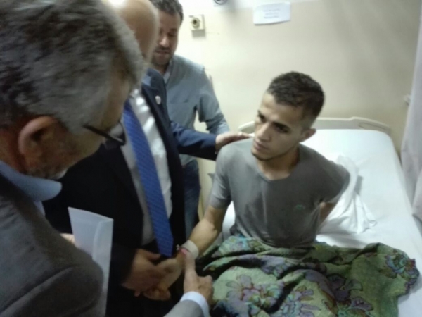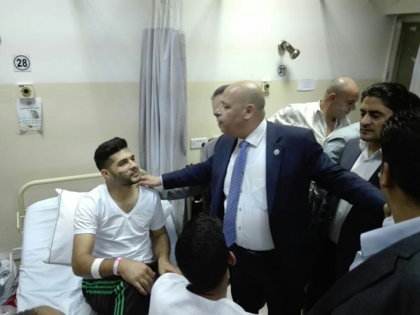 وقام وفد من نقابة المقاولين برئاسة م.أحمد اليعقوب وعدد من أعضاء مجلس النقابة ولجنة دعم صمود الشعب الفلسطيني بالنقابة، إلى جانب عدد من النواب بزيارة جرحى مسيرة العودة الفلسطينية الذين يتلقون العلاج في مستشفى مدينة الحسين الطبية.
