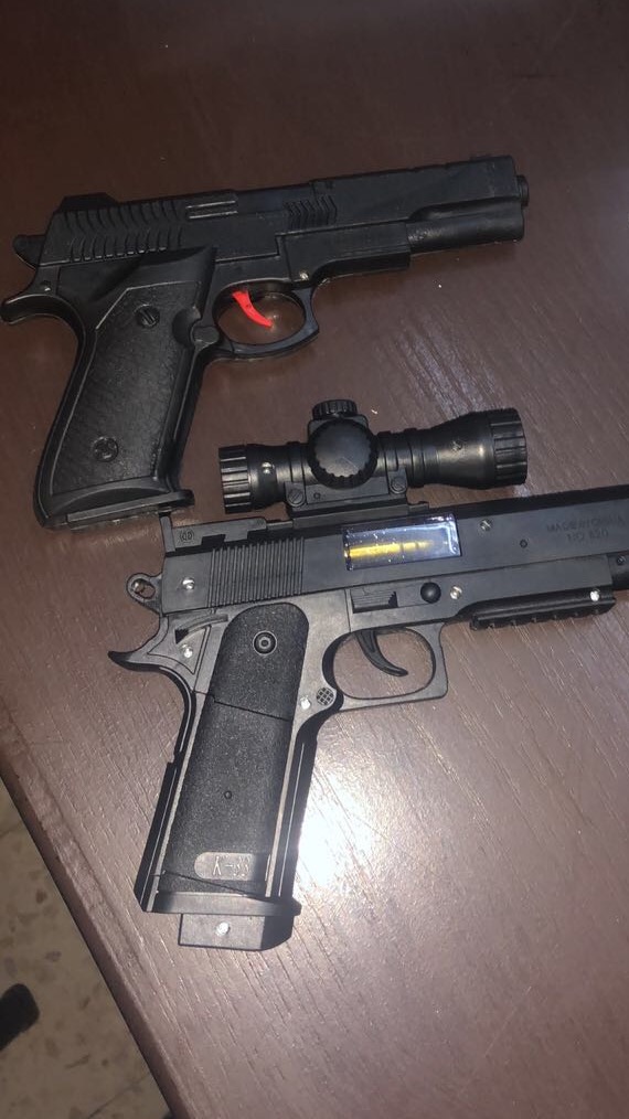 و تمكن طاقم هذه الدورية من مشاهدة شخص بيده حقيبة ويقف بالقرب من فرع البنك حيث القي القبض عليه وضبط بداخل الحقيبة التي كانت بحوزته على مسدسين بلاستيكيين وكمامات وكفوف طبية ، وبالتحقيق معه اعترف انه كان ينوي تنفيذ عملية سلب على فرع ذلك البنك .
