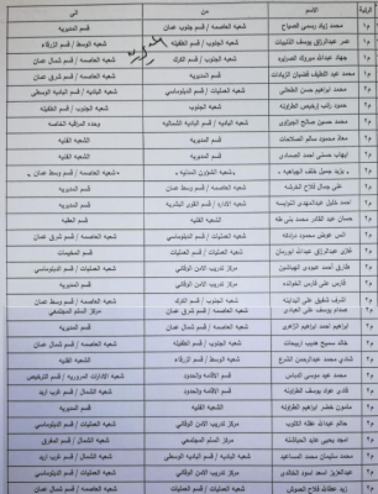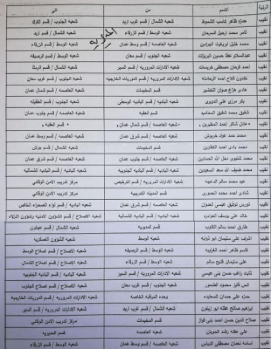 قرر مدير الأمن العام اللواء فاضل الحمود اجراء تنقلات بين الضباط التالية اسمائهم :