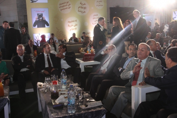 والقى رئيس مركز حماية وحرية الصحفيين الأستاذ نضال منصور كلمته التي شكر بها جميع الحضور على دعمهم ومساندتهم مؤكدا ان للصحافة حرية مطلقة لا حدود لها، ولا يوقفها شيء وأن المركز يبذل كل الجهود الممكنة من اجل العمل على رفع سقف الحريات وتطوير الحالة المهنية.