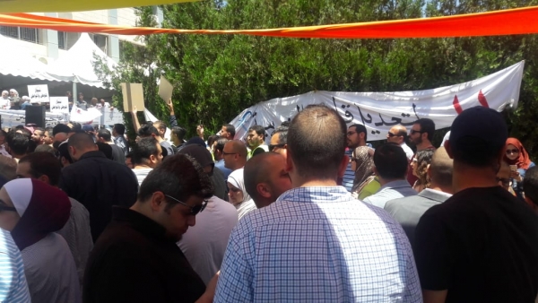 فرغم التحذيرات المتكررة والعديدة من قبل الحكومة من تنفيذ الاضراب الذي قررته عدة جهات نقابية ومؤسسية احتجاجا على مشروع قانون ضريبة الدخل الجديد الا ان عدد كبير من القطاعات والموظفين في القطاع العام والخاص باشروا بتنفيذ الاضراب منذ التاسعة صباحا امام مبنى مجمع النقابات المهنية وسط اضرابا عن العمل