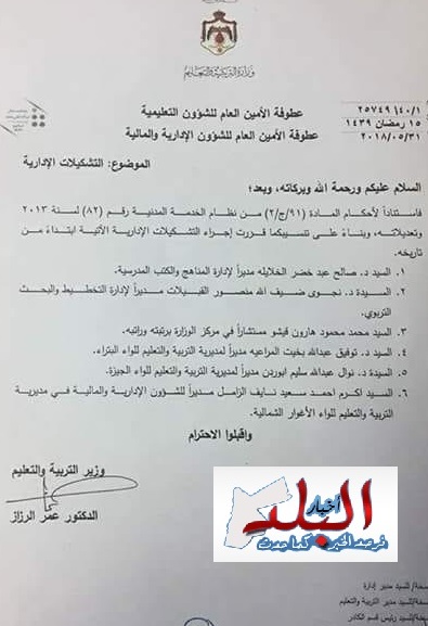 تشكيلات في وزارة التربية والتعليم ..اسماء