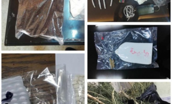 وفي وسط العاصمة القي القبض على مروج للمواد المخدرة بعد مقاومته للقوة الامنية ومحاولته اطلاق النار باتجاههم اثناء مداهمة منزله وضبط بحوزته سلاح ناري وكمية من مادة الحشيش الصناعي الجوكر ، كما والقي في احدى مناطق شمال عمان بعد كمين ناجح على شخص مطلوب للادارة ب 6 طلبات وبحوزته كمية من المواد المخدرة بقصد التعاطي ، والقي القبض كذلك على شخصين من المشبوهين في قضايا التعامل بالمواد المخدرة بعد الاشتباه بهما وايقاف المركبة التي كانا يستقلانها والتي عثر بداخلها على سلاحين ناريين ( احدهما اتوماتيكي ) وكمية من المواد المخدرة بقصد التعاطي ، وفي احدى مناطق جنوب عمان وبعد مقاومة شديدة تمكنت القوة الامنية من الادارة من ضبط مروجين اثنين للمواد المخدرة متلبسين اثناء بيعهما لتلك المواد.