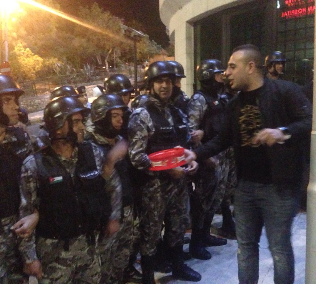 وقال شهود عيان لسرايا ان المحتجين ضد قانون الضريبة، قاموا بتوزيع الحلوى على المشاركين في الاعتصام قرب الدوار الرابع، ابتهاجاً برحيل حكومة هاني الملقي.