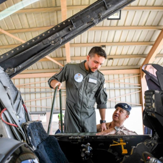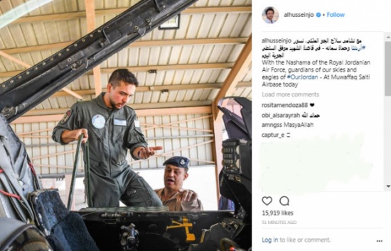 وكتب عبر حسابه على الانستغرام؛ "مع نشامى سلاح الجو الملكي، نسور أردننا وحماة سمائه ، في قاعدة الشهيد موفق السلطي الجوية اليوم".