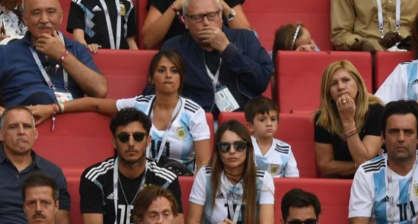 تابعت زوجة النجم الأرجنتيني ليونيلميسيمباراة ثمن نهائي كأس العالم 2018 أمامفرنسا، في المدرجات وسط الجماهير، وبرفقتها ابنها الأكبر تياجو، لكن النهاية لم تكن سعيدة بعد خروج التانجو من المنافسات بالخسارة بنتيجة (4-3).