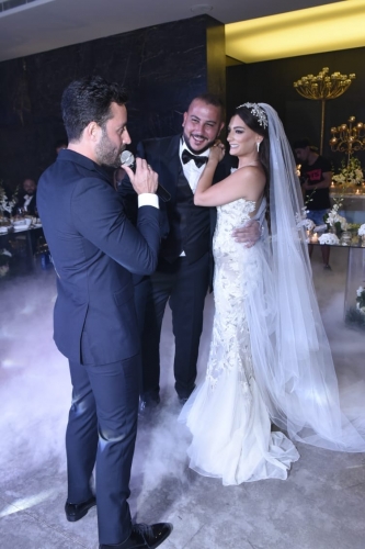 افتتح حفل الزفاف الفنان سعد رمضان باغنية "اتحدى العالم" للنجم صابر الرباعي، التي اختارها العروسان لتكون الرقصة الاولى. كما زف كل من النجوم، نادر الاتات ،رويدا عطية، محمد المجذوب، ،محمد خيري، همام واحمد المصلاوي، العروسين على طريقته الخاصة.