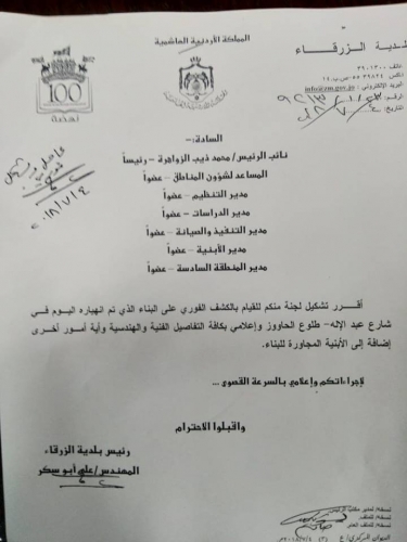 وبين ابو السكر بأن اليات وكوادر البلدية تعمل مع فريق الانقاذ التابع لدفاع مدني الزرقاء في ازالة الانقاذ للبحث عن المحاصرين داخل المبنى .
