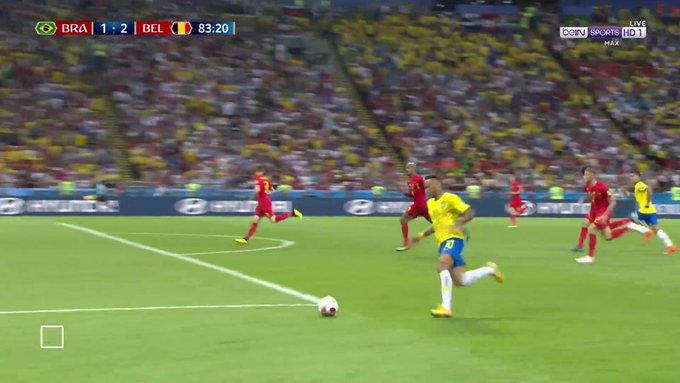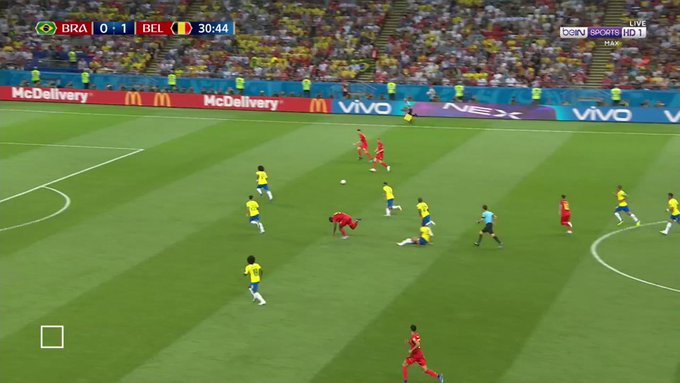 مهاجم بلجيكا روميلو لوكاكو ضرب دفاع البرازيل ومرّر إلى دي بروين الذي سدّد تصويبة متقنة في الزاوية اليمنى لمرمى أليسون.