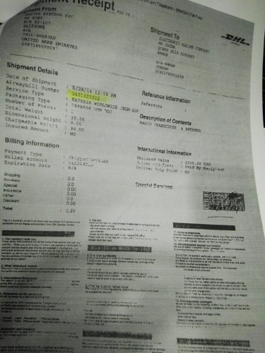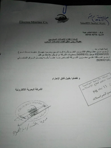 ومن هذه المخالفات تبليغ مديرة مكتب احد الشركات كتابا يوضح وجود جهاز معيد بث مرفق معه نوعه وموديله ورقمه التسلسلي لهيئة قطاع تنظيم الإتصالات .