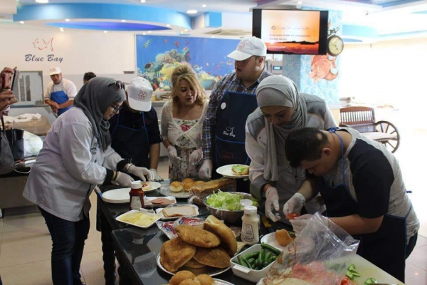 للأسبوع الثالث على التوالي استضاف مطعم Blue Bay للأسماك والمأكولات البحرية ، أسرة مشروع شيف شباب من مبادرة متلازمة داون " معنا حياتنا لها معنى " ، من خلال اقامة ورشة عمل بالتعاون بين ادارة المطعم ممثله بالسيد توفيق الحوراني وأسرة المطعم ، وفريق الشيف عبد الله المحارمة وعلا فراح و رندة الصلاج ، لتأهيل الشباب لتعليم فنون الطهي وإعداد الطعام والمأكولات والحلويات ضمن مهنية عالية.