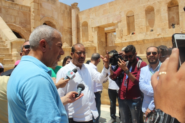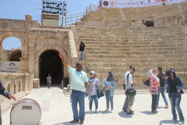 حيث نُظمت الجولة في مدينة جرش الاثرية (المسرحين الشمالي والجنوبي والساحة الرئيسية ،شارع الاعمدة ) لفايات الاطلاع على التحضيرات والتجهيزات قبل اطلاق فعاليات المهرجان