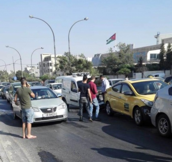 اصيب ، السبت ، رجل أمن اثر تعرضه لحادث تصادم في شارع الأردن بعمان .