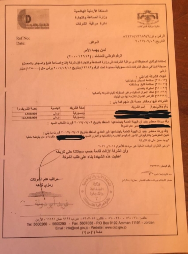 كما يظهر أن حصة الشريك الأول في الشركة تبلغ مليون ونصف المليون دينار، فيما تتجاوز حصة الآخر المئة وثلاثة وعشرين مليون دينار.
