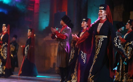 أزياء الراقصين بدت لوحة تراثية جميلة، تصاميم منمقة، يُميزها "الطلبق" (غطاء الرأس)، و"الثاغستان" (الحذاء الخاص بالزي)، إضافة إلى لباس المرأة الشركسية الذي يبرز جمالها ورشاقتها وأناقتها مع الحشمة.