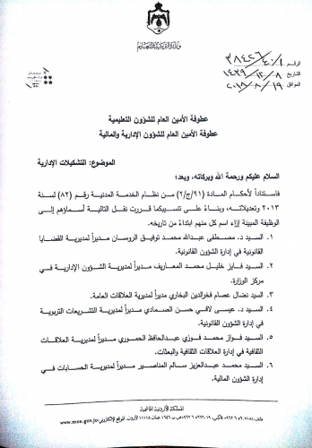 قرر وزير التربية والتعليم الدكتور عزمي محافظة ياجراء تشكيلات ادارية في وزارة التربية .
