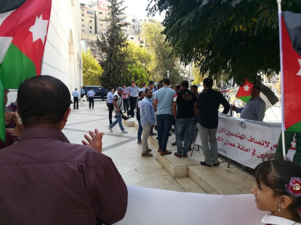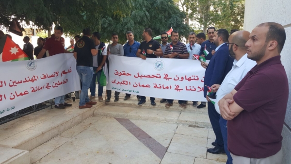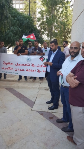 وجاء ذلك بعد ان بدأت نقابة المهندسين اعتصامها امام مبنى امانة عمان الكبرى منذ ساعات الصباح للمطالبة بحقوق منتسبيها في الامانة ..