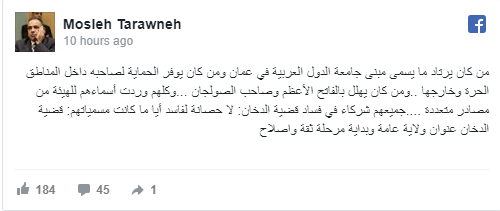 وأشار الطراونة في منشور على صفحته الشخصیة على موقع التواصل الاجتماعي فیسبوك، بأن من كان یرتاد ما یسمى مبنى جامعة الدول العربیة في عمان ومن كان یوفر