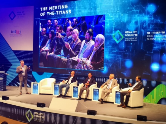وقدم شكره للرعاة للمنتدى، وزارة الاتصالات وتكنولوجيا المعلومات وهيئة الاستثمار وشركات الاتصالات -اورانج وامنية وزين- وشركة ميناآيتك والملكية الأردنية واوبتيميزا ومجمع الملك الحسين للأعمال.