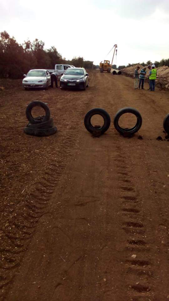 ووضع أصحاب الأراضي الإطارات المطاطية أمام آليات المشروع، ما أدى إلى توقف العمل بالمشروع جزئيا لليوم الثالث على التوالي.