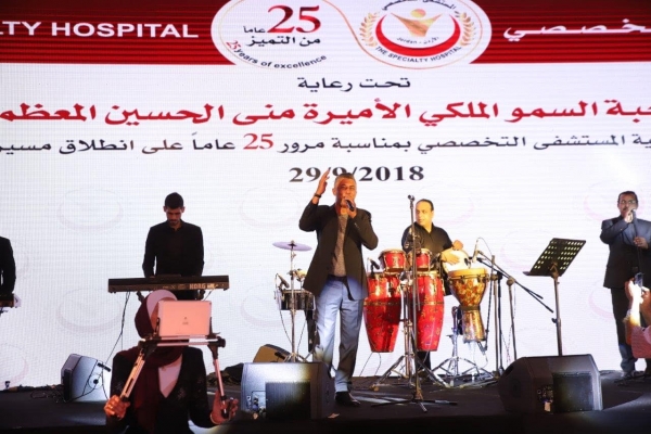 وبعد انتهاء مراسم التكريم قدم النجم الاردني والعربي الفنان عمر العبداللات فقرة فنية غنى فيها للوطن ولقائد الوطن وهنأ اسرة المستشفى التخصصي بهذه المناسبة .