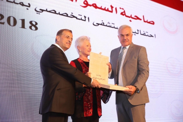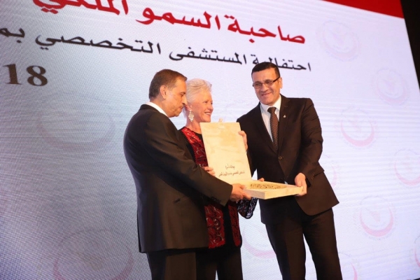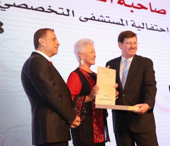 وقد تفضلت صاحبة السمو الملكي بتقديم هدية تذكارية مقدمة من أسرة المستشفى التخصصي وهيئة المديرين الى الدكتور فوزي الحموري رئيس هيئة المديرين وذلك تقديرا لجهوده المميزة في نجاح مسيرة المستشفى التخصصي.