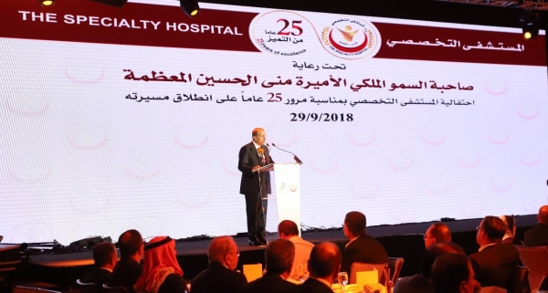 قصة خمسة وعشرين عاماً من العطاء رواها من أعطى جهده وعلمه وحياته ليجعل المستشفى نجماً ساطعاً في سماء الطب العربي الدكتور فوزي الحموري رئيس هيئة المديرين ومدير عام المستشفى التخصصي استعرضها من خلال فيلم توثيقي استذكر فيه بدايات تأسيس المستشفى وتطوره عبر السنوات، مشيراً إلى دور المستشفى في خدمة المجتمع المحلي والعربي ، مرورا برحلة التميز وحصوله على أكبر عدد من شهادات التميز والاعتمادية والجودة ، مفاخرا بحصول التخصصي على جائزة الملك عبد الله الثاني للتميز ولدورتين متتاليتين ، معتبرا أن من أهم اسباب نجاحه اختيار الكفاءات الصحية المتميزة بالاضافة الى تزويد المستشفى بأحدث الأجهزة الطبية على مستوى العالم ، مستعرضا رؤية المستشفى التخصصي 2025 والتي تشمل بناء مستشفى حديث بمعايير غير مسبوقة وفندق بمواصفات عالمية لتكتمل خدماتنا الطبية والفندقية .